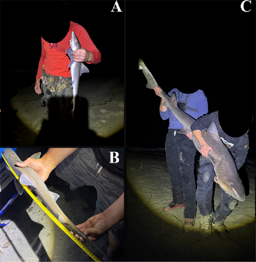 Ziani, N., Soranzo, T., Jambura, P.L. et al. 2025. Record-sized female smooth-hound (Mustelus sp.) captured in Corsican waters and preliminary observations on feeding on the invasive blue crab Callinectes sapidus.